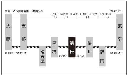在来線・新幹線とも JR浜松駅をご利用下さい。