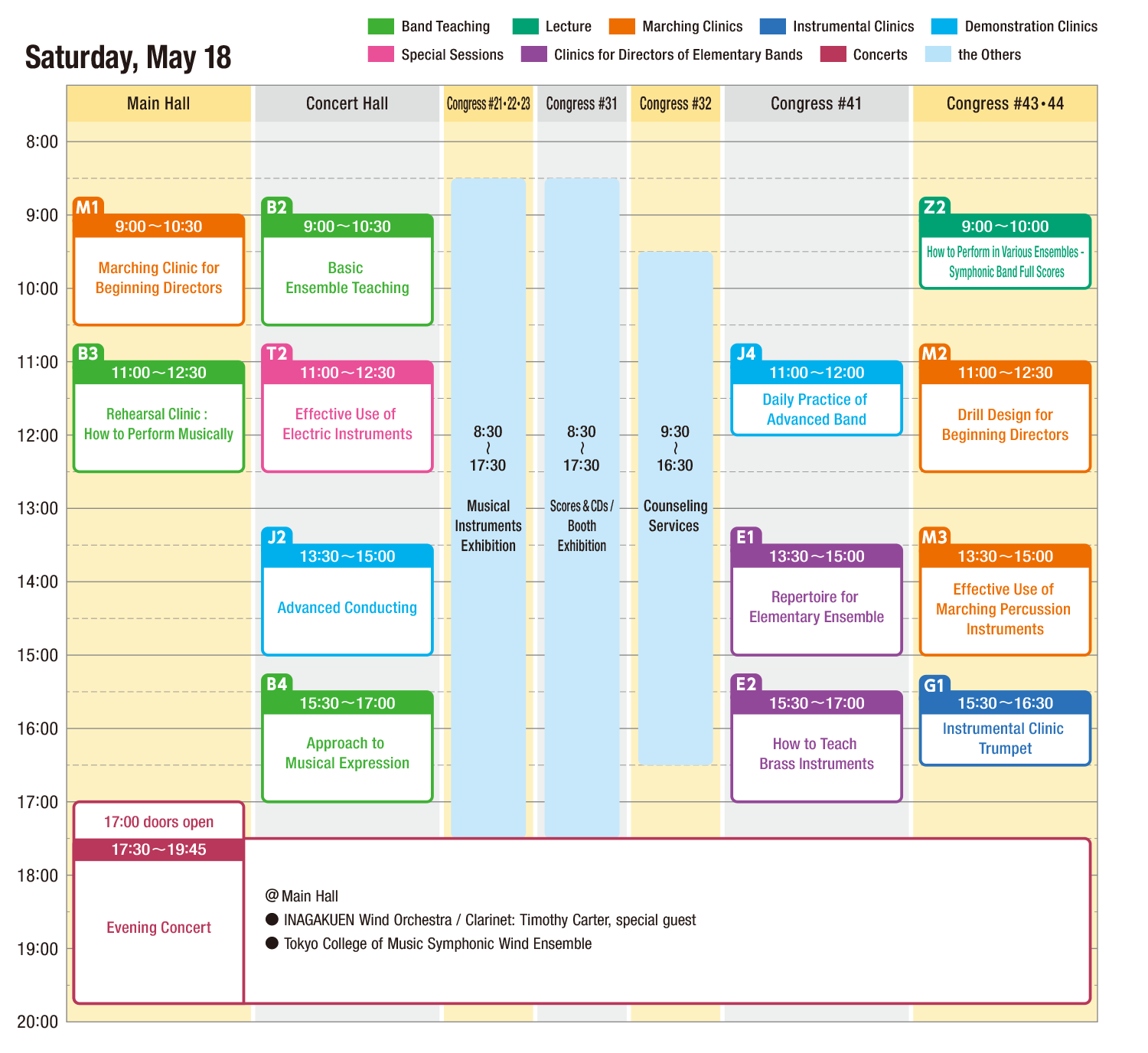 Clinics and concerts are subject to change.
